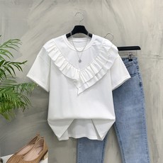 행복여[신상무배]더블 브이 프릴 포인트 티셔츠