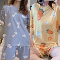 1+1 여성용 반팔 파자마 상하의 세트 홈웨어 냉장고 잠옷