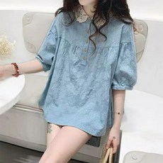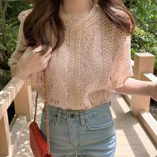 [바니드] 레이스 여름 블라우스 여성 반팔 티셔츠 여자 패션 루즈핏 상의 0062