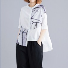 [바니드] 여성의류 추상 프린터 인쇄셔츠 여름반팔 루즈핏 디자인 블라우스 0202