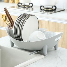 깔끔 와이드 물빠짐 배수그릇 식기건조대, 그레이