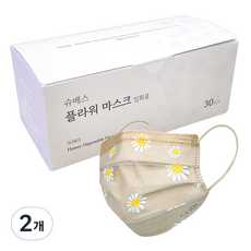 슈베스 일회용 플라워 마스크 성인용, 데이지 베이지, 30개입, 2개