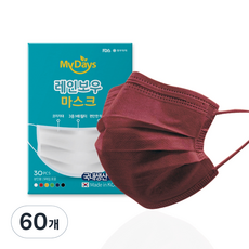 마이데이즈 MB필터 레인보우 일회용 컬러 덴탈 마스크 일반형 L, 3매입, 60개, 버건디 와인