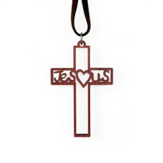 차량걸이-이중조각십자가3종 택1 JESUS 하트 십자가차걸이 교회선물용, 01.지저스하트