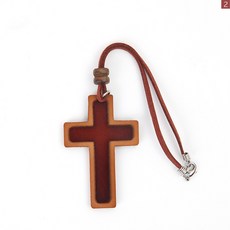 나무십자가목걸이 (가죽 오크 향나무) 차량용 원목 십자가 룸밀러소품