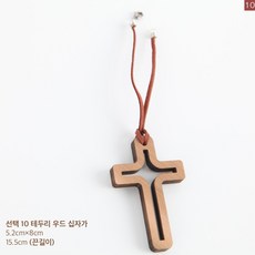 차량용 십자가 룸미러 자동차걸이 가죽 원목십자가, 10 테두리 우드 십자가