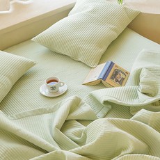 까사베르데 순면와플 체크보딩 패드 겸 이불, 04 그린체크 화이트