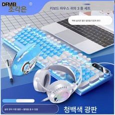 DFMEI 펑크 키보드 마우스 세트 유선 컴퓨터 게임 사무기기 터치 버튼 마우스 이어폰, 실버블랙아이스블루, [키보드+마우스+이어폰]