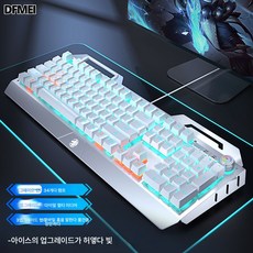 DFMEI 키보드 마우스 세트 컴퓨터 일반기 외장 케이블 비즈니스 사무용 가정용 게임, 더블 스펠링 유선 키보드(발광 화이트+블루)