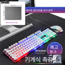 DFMEI 펑크 빈티지 컴퓨터 유선 키보드 마우스 세트 발광 기계식 터치 부상 게임 키 마우스, 블랙 디럭스【버튼 컴포트 + 무음방수】, 키보드+마우스+마우스패드