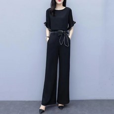 구디프 여성용 나들이룩 심플 루즈핏 반팔티셔츠 + 7부 밴딩 와이드 팬츠 세트