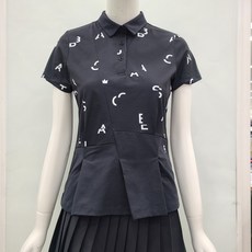 까스텔바작 여성 패턴 절개 주름 카라 반팔 티셔츠_0BGBMTS721BK