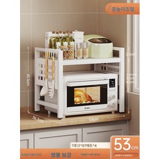 주방 전자렌지 선반 다용도 가정용 탁상 테이블 오븐 신축 가능 거치대 2단 수납 선반, 전아백【53cm-특후특조】+표준부품