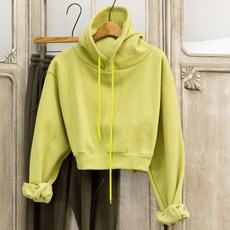 퍼프소매 세미크롭 기모 후드티 꾸안꾸 루즈핏 맨투맨