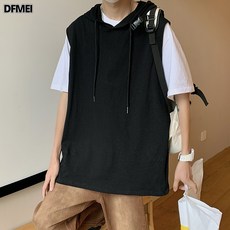 DFMEI 남성 후드 런닝 여름 루즈핏 민소매 솔리드 트레이닝