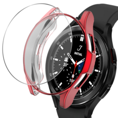 루아러블 갤럭시워치 호환 커버 범퍼 보호 케이스 + 강화유리 9H 고강도 액정보호필름 세트, 레드(케이스)