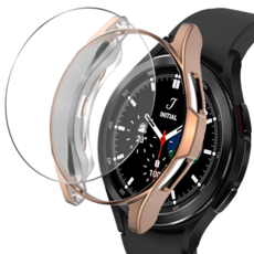 루아러블 갤럭시워치 호환 커버 범퍼 보호 케이스 + 강화유리 9H 고강도 액정보호필름 세트, 로즈골드(케이스)