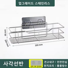 강력 흡착 욕실선반 스텐 욕실선반 욕실정리대 수납선반, 업그레이드 스테인리스-사각 선반, 1개