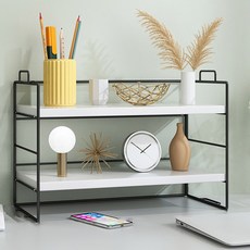 디모어 다용도 책상정리 미니 우드선반 2단 5색상, 블랙+화이트
