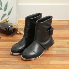 여성용 AMFEAC 지퍼 벨트 가죽 숏 미들힐 앵클부츠