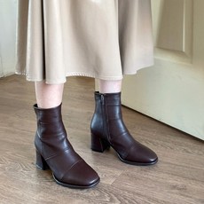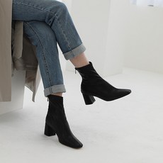 단골언니 여성용 에인느 금장굽 삭스 스판 앵클부츠