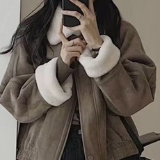 ANYOU 겨을 여성 캐주얼 스웨이드 페이크 퍼 숏 칼라넥 무스탕 자켓