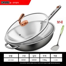 DFMEI 304 스테인레스 스틸 웍 비점착 냄비 비코팅 저유연 볶음 냄비 녹슬지 않는 인덕션 범용, 라이트 디럭스 냄비+강화유리뚜껑+삽, 304 항균 스텐냄비 32CM 귀걸이