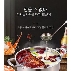 가정용 인덕션 냄비 원앙 냄비 가정용 특후 대용량 뚜껑 포함, 304 맑은 국 냄비 (특대), 26CM (2~3인 권장), 1개