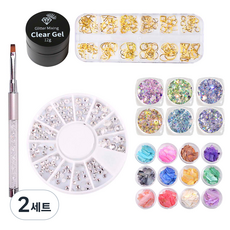 메이브라운 젤네일 세트 L MSET020, 클리어젤 + 브러쉬 + 자개글리터 12종 + 글리터 6종 + 스톤 12종 + 파츠 12종, 2세트